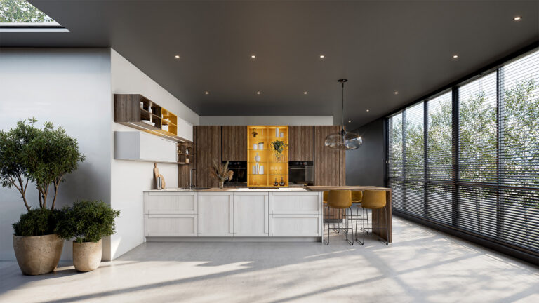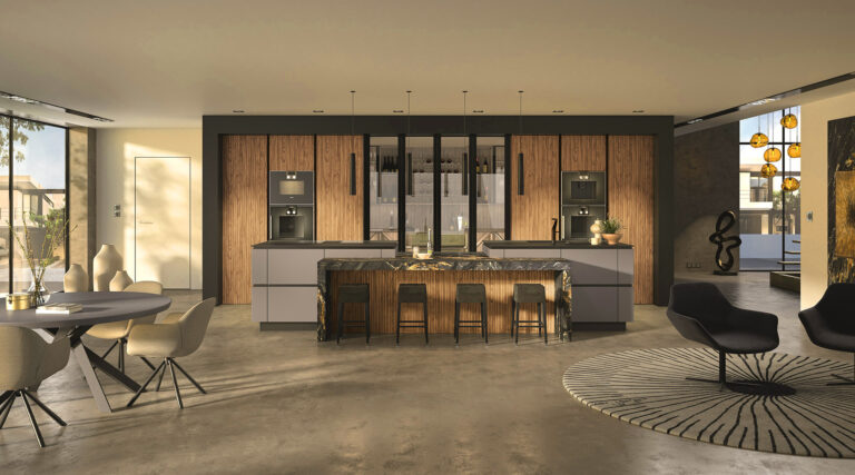 Des cuisines aux contrastes marqués ou aux nuances douces et naturelles, toujours bien équilibrées et inspirées par le mélange de matériaux. Espaces chaleureux et raffinés à la beauté intemporelle, jeu subtil entre îlot central et linéaire, cette collection séduit par son adaptabilité à tous les espaces.